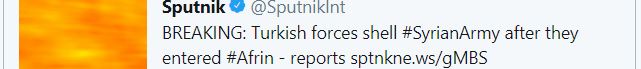 Στο μεταξύ ο εκπρόσωπος τύπου του YPG ο Nuri Mahmut δήλωσε ότι “ο συριακός στρατός βομβαρδίστηκε από τούρκους καθώς εισήλθε στο Αφρίν και 2 σύριοι στρατιώτες σκοτώθηκαν”.