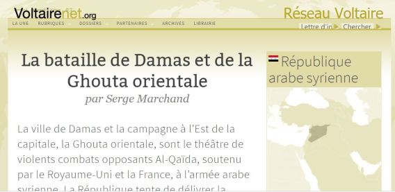Η Συριακή Δημοκρατία έρχεται ν ΄αποφασίσει την απελευθέρωση της Ανατολικής Ghouta από τζιχαντιστές. Εντατικοί βομβαρδισμοί επιχειρήθηκαν από πυροβολικό κι αεροπορία.Πρόκειται για την εξολόθρευση των τζιχαντιστών και τη δημιουργία όσο το δυνατόν λιγότερων θυμάτων μεταξύ των αμάχων.Κατά τη διάρκεια αυτής της επιχείρησης η προώθηση ανθρωπιστικών κομβόι είναι απίθανη.Η Al-Qaïda ρίχνει οβίδες επί της πρωτεύουσας. Σε καιρούς normal, οι τζιχαντιστές στοχεύουν κυρίως την πρεσβεία του Iran στο Mazzeh,την πλατεία των Omeyyades (έδρα της τηλεόρασης και του Υπ.Άμυνας), το ρωσικό πολιτιστικό κέντρο στοκέντρο της πόλης καιτη Ρωσική Πρεσβεία.Αυτή την φορά οι ρουκέτες πέφτουν λίγο πολύ παντού. Oι Δαμασκηνοί και τα εκατομμύρια των συρίων που αρνούνται τη σαρία και κατέφυγαν στη συριακή πρωτεύουσα υπό τη προστασία του συριακού κράτους αποπειρώνται εκ νέου να επιβιώσουν. Πάνω από ένα τρίτο των κατοίκων παραμένει κλεισμένο στο σπίτι από το φόβο να μην σκοτωθεί από οβίδες στην πόλη.Ένα τέταρτο των εμπορικών παραμένουν κλειστά και οι διοικητικές υπηρεσίες εργάζονται στο ralenti.