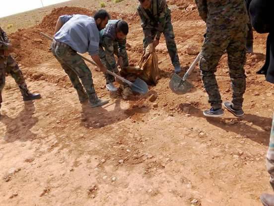 Σύμφωνα με τον ανταποκριτή οι μονάδεςτου στρατού σε συνεργασία με τον Ερυθρό Σταυρό κάνουν την εκταφή των σωρών για νά ποδοθούν στις οικογένειες των θυμάτων. sana 20.3.18 Η μαζικές αυτές εκτελέσεις αποδίδονται σε φράξιες της αλ Νούσρα.