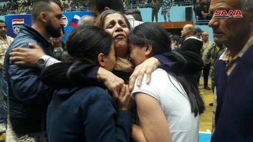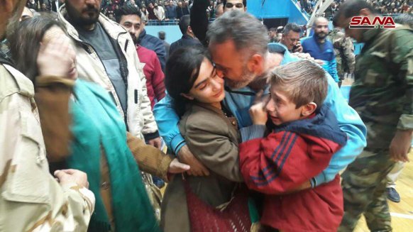 Στιγμές συγκλονιστικές στιγμές μεγάλης νίκης. Η Συρία δεν πρόκειται να κοιμηθεί απόψε. Ζει συγκλονιστικές στιγμές από την απελευθέρωση 5 με 6.000 ατόμων που απήχθηκαν και κρατούνταν όμηροι από την τρομοκρατική οργάνωση Jaysh al Islam. H υποδοχή τους γίνεται στο Στάδιο Faiha όπου τους ανέμεναν οι συγγενείς τους. Το α΄λεωφορείο με τους ομήρους βασανισθέντες που απελευθερώθηκαν έφθασε ήδη στο κλειστό αθλητικό κέντρο.