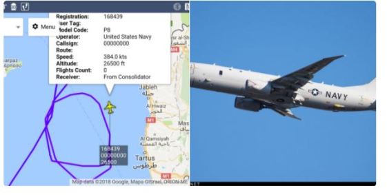 Το κατασκοπευτικό αεροσκάφος με αριθμό 168 439 απογειώθηκε από την αεροπορική βάση Sigonella στο ιταλικό νησί της Σικελίας, και είναι τώρα σε υψόμετρο 8.000 μ. και ίπτααται σε απόσταση 40 χιλιομέτρων από την αεροπορική βάση Hmeymim και από τη βάση του ρωσικού Ναυτικού στην Ταρτούς.