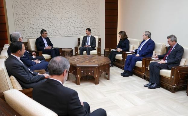 Ο πρόεδρος al-Assad ανέφερε σε συνάντηση του σήμερα στη Δαμασκό με τον υφυπουργό Εξωτερικών του Ιράν το  Jaberi Ansari ότι η τρόικα ΗΠΑ,Αγγλία, Γαλλία που επιτέθηκαν στη Συρία και τα πιόνια τους στην περιοχή υποστήριξαν τους τρομοκράτες από την πρώτη ημέρα του πολέμου. Τόνισε  ότι η πρόσφατη τριμερής επιθετικότητα δεν θα καταφέρει να σταματήσει τον πόλεμο κατά της τρομοκρατίας,  ώσπου ν΄ανακτηθεί όλη η επικράτεια της Συρίας.al manar dimpenews;com