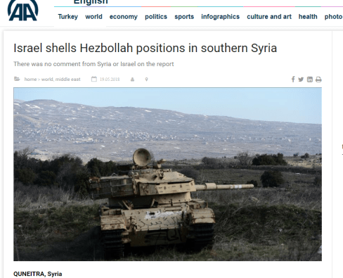 Σύμφωνα με πηγή της αντιπολίτευσης ισραηλινά τανκ βομβάρδισαν δυνάμεις της Hezbollah βόρεια του υψώματος Tal Al-Harra στην Quneitra. Το Orient news αναφέρει πως το Ισραήλ βομβάρδισε θέσεις φιλοκυβερνητικών πολιτοφυλακών στην περιοχή της Quneitra. Οι φιλοσυριακές σελίδες μιλούν για 2 οβίδες ή και περισσότερες που εξαπολύθηκαν από τρομοκρατικές οργανώσεις.