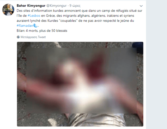 “Οι άραβες πρόσφυγες σύριοι και ιρακινοί του στρατοπέδου επιτέθηκαν σε κούρδικες οικογένειες από σεκταριστικό κι εθνοτικό μίσος και σκότωσαν 4 άτομα. Ανάμεσά τους είναι τα ξαδέρφια μου Izzat Tarbush και Kaniwar Tarbush όσο και οι Ahmad και Kaniwar από Afrin », είπε.
