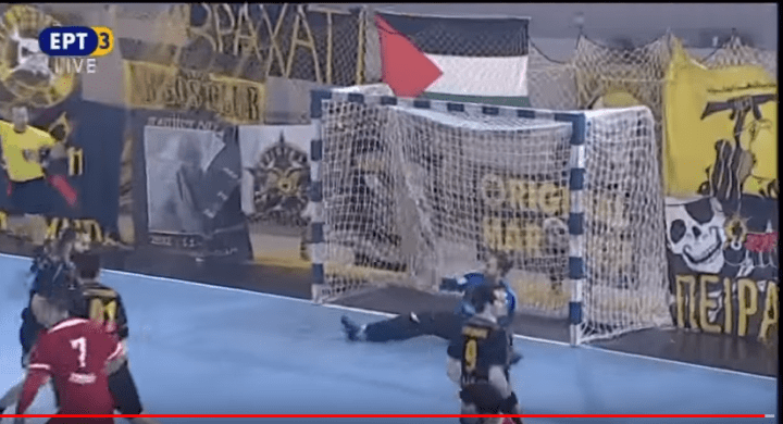 Oι σημαίες της Hezbollah και της Παλαιστίνης υψώθηκαν από τους φανατικούς της ΑΕΚ στο ματς που έδινε η ομάδα τους με τον Ολυμπιακό στους τελικούς της Α1 χάντμπολ. Ο Ολυμπιακός κέρδισε τον αγώνα αλλά η ΑΕΚ έγραψε ιστορία αφού οι φανατικοί της oι Original απέδειξαν ότι υποστηρίζουν την Αντίσταση..Σήμερα ήταν μια δύσκολη μέρα για την Παλαιστίνη αφού έθαψε την εθελόντρια νοσοκόμα Razan al-Najjar, 21 ετών που σκοτώθηκε από ισραηλινό sniper.
