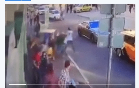 H στιγμή της επίθεσης ταξί κατά πλήθους στο κέντρο της Μόσχας χθες με 7 τραυματίες και σύλληψη του οδηγού.