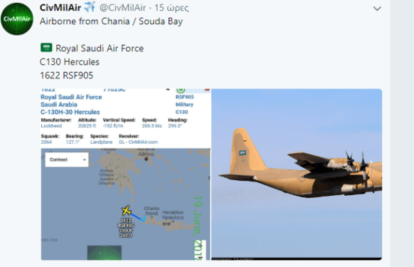 Xθες απογειώθηκε από τη Σούδα μεταγωγικό στρατιωτικό αεροσκάφος της Σαουδικής Αραβίας τύπου C 130 Hercules…..