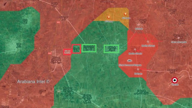 O συριακός στρατός συνεχίζει την επέλασή του στο συριακό Νότο. Απελευθερώνει την μια πόλη μετά την άλλη και το ένα χωριό μετά τ΄άλλο. Απελευθέρωσε την Αlma αλλά και ένα από τα μεγαλύτερα οχυρά των τρομοκρατών στην περιοχή την πόλη al-Harak / al Hirak αλλά και την Soura. Νωρίτερα σήμερα ανέκτησε Sad Ibta, Tell Hamad και τις εγκαταστάσεις της Ταξιαρχίας 271 σύμφωνα με μέσα της Αντίστασης. Ελευθέρωσε την Gharbiyyeh, Ταξιαρχία 52 και την χριστιανική πόλη Rakham.Ο στρατός έθεσε υπό τον έλεγχό του και την αεροπορική βάση 49 δυτικά του al-Harak.