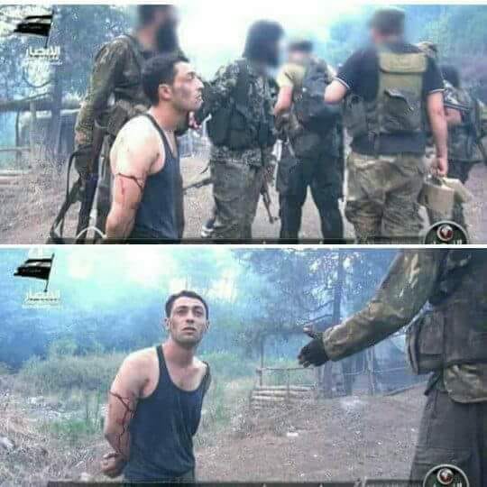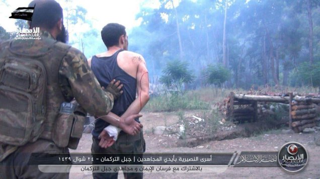 Χθες το βράδυ στην ορεινή Λατάκια στο Jabal Turkman στην αιφνιδιαστική επίθεση των τρομοκρατών της Ansar Αl Islam κατά θέσεων του στρατού αιχμαλωτίστηκε ο υπολοχαγός Ηayyan Αbdul karim. Oι τρομοκράτες τον έχουν εμφανώς βασανίσει είναι καθηλωμένος ματωμένος με δεμένα πισθάγκωνα τα χέρια στην ύπαιθρο. Οι τρομοκράτες έδωσαν τελεσίγραφο 48ωρο για να γίνει διαπραγμάτευση για την τύχη του αιχμαλώτου.
