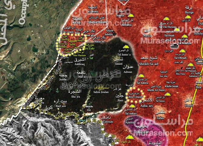 Oι μονάδες του συριακού στρατού συνεχίζουν να επιχειρούν στο συριακό νότο κατά της Daesh κι ελευθέρωσαν πολλά χωριά σήμερα. Για 14 χωριά που απελευθερώθηκαν σήμερα στην περιφέρεια της Quneitra μιλούν στρατιωτικές πηγές. Μεταξύ αυτών ο συριακός στρατός ανέκτησε Sayda Al-Golan ,Abu Hartayn και Ayn Dhakar και προελαύνει ανατολικά του Jallin. Επίσης ανέκτησε τα Khan Sayda, al-Luwbayd, al-Muqaziz και σκότωσε πολλούς τρομοκράτες και δέσμευσε οπλισμό τους.Xθες είχε ελευθερώσει και τα Ghadir al Bustan, Malaqa, Um al Loqes, Bassah Sharqi, Bakar Sharqi και Bakar.