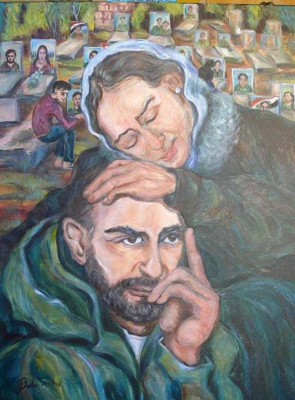 ”Πολεμώντας και πεθαίνοντας από καρκίνο στο σπίτι…..Λυπάμαι γιατί δεν πήγα ποτέ στη Συρία δεν είδα ποτέ τη Συρία. Δεν έχω δει ποτέ τη Συρία… Οι γιατροί πριν από δύο εβδομάδες μου έδωσαν μόνο λίγες μέρες ακόμη ζωής, είμαι ακόμα ζωντανή. Κάθε μέρα παίρνω όλο και περισσότερα παυσίπονα. Η Συρία θα κερδίσει, αλλά έχασα τη μάχη κατά του καρκίνου. Μετά από τόσο μεγάλο πόνο, ο θάνατος θα είναι λύτρωση και έλεος. Χάρη σε όλους τους φίλους μου ελπίζω ότι η ζωγραφική μου έκθεση για τη Συρία θα φτάσει στη Δαμασκό και θα προβληθεί από τον Δρ. Μπασάρ αλ Τζαφάρι. Ελπίζω ότι η συριακή Πρεσβεία στο Βερολίνο θα φέρει στη Συρία αυτούς τους πίνακες που σχετίζονται με τη Συρία και το λαό της..”