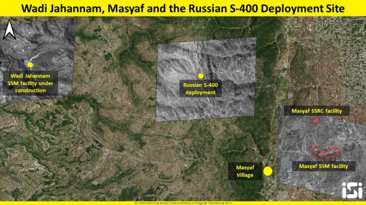 Το Ισραήλ παρουσίασε δορυφορικές εικόνες μιας εγκατάστασης (στην τελική φάση κατασκευής) που τις χρεώνει στο Ιράν για την κατασκευή βαλλιστικών πυραύλων στην περιοχή Wadi Jahannam στο Masyaf στα νοτιοδυτικά της πόλης Hama. Η εγκατάσταση προστατεύεται από το ρωσικό σύστημα αεράμυνας S-400 που έχει αναπτυχθεί εκεί και που ο Ερντογάν θεωρεί απαραίτητο να εξοικονομίσει και που οι ΗΠΑ απείλησαν την Ινδία με τιμωρίες αν τολμήσει και το προμηθευθεί.