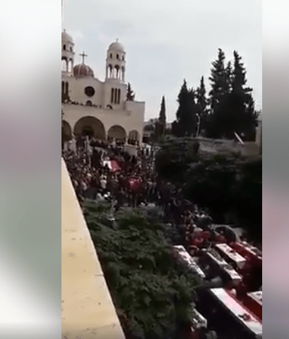 Mαύρη μέρα στην πιο μεγάλη ορθόδοξη πόλη της Συρίας των 10.000 κατοίκων την Muhardah. Κηδεία των 9 μαρτύρων που έπεσαν χθες από πυραύλους Grad τρομοκρατών που στόχευσαν κατοικίες. Τα φέρετρα ήταν σκεπασμένα με τη συριακή σημαία. ΑΥΤΟΙ ΔΕΝ ΠΡΟΔΩΣΑΝ. Μεταξύ των θυμάτων ήταν 5 παιδιά ενώ τα τρία θύματα ήταν παιδιά της ίδιας οικογένειας.
