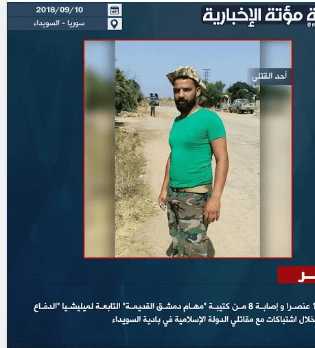 Παράλληλα όπως ανακοίνωσε η ISIS σκότωσε 13 και τραυμάτισε 8 μαχητές των φιλοκυβερνητικών δυνάμεων των Μονάδων Εθνικής Άμυνας στην έρημο της Sweida. Οι μαχητές ανήκαν σε σχηματισμό Task Force της παλιάς Δαμασκού.