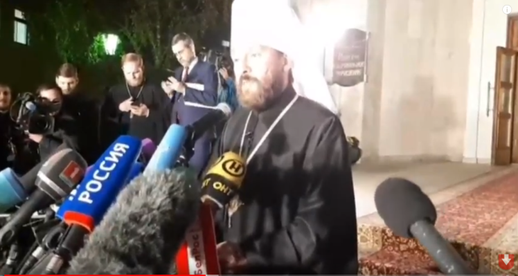 Η Ιερά Σύνοδος της Ρωσικής Ορθόδοξης Εκκλησίας αποφάνθηκε ότι είναι αδύνατον περαιτέρω ευχαριστιακή κοινωνία με το Οικουμενικό Πατριαρχείο Κωνσταντινουπόλεως, δήλωσε ο Πρόεδρος του Τμήματος Εξωτερικών Εκκλησιαστικών Σχέσεων του Πατριαρχείου Μόσχας Μητροπολίτης Βολοκολάμσκ Ιλαρίωνας μετά από τη σύγκλιση της Ιεράς Συνόδου του Ρώσικου πατριαρχείου στο Μινσκ της Λευκορωσίας, την Δευτέρα.