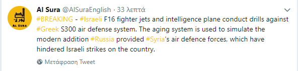 Ωστόσο όλες αυτές τις μέρες και σήμερα ακόμη πηγές αναφέρουν πως τα ισραηλινά μαχητικά και το ισραηλινό κατασκοπευτικό αεροσκάφος δεν έκαναν στη χώρα μας τίποτα άλλο παρά προσομοίωση επίθεσης κατά των ρωσικών S300 στη Συρία καθώς και η Ελλάδα διαθέτει αυτό το σύστημα…