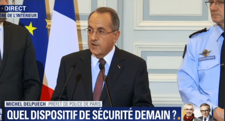 Ο Διευθυντής της Αστυνομίας του Παρισιού ο Michel Delpuech, ανακοίνωσε αυτή την Παρασκευή το βράδυ ότι τίθεται μια περίμετρος ασφαλείας στο Παρίσι όπου καμιά διαδήλωση δεν εξουσιοδοτήθηκε στο πλαίσιο της κινητοποίησης των Κίτρινων Γιλέκων / gilets jaunes (BFMTV)..
