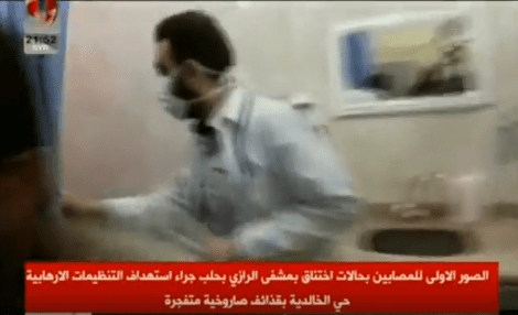 Δραματικά ανεβαίνει ο αριθμός των θυμάτων ΟΛΟΚΑΥΤΩΜΑ ‘Αουσβιτς το Χαλέπι…η συριακή κρατική τηλεόραση τώρα λέει ότι 75 πολίτες τραυματίστηκαν από τη χημική επίθεση των τρομοκρατών στο Χαλέπι. 51 θύματα μεταφέρθηκαν στο πανεπιστημιακό νοσοκομείο Χαλεπίου και οι 24 στο al-Razi hospital.