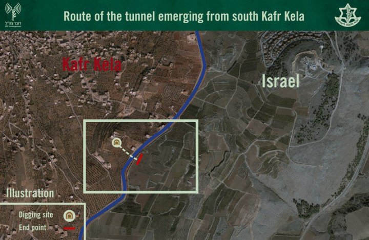 O Iσραηλινός στρατός ισχυρίζεται πως ανακάλυψε το α΄τούνελ επίθεσης διασυνοριακό σκαμμένο από τη Hezbollah,στο νότο του λιβανέζικου χωριού Kafr Kila, έναντι της ισραηλινής πόλης Metulla.