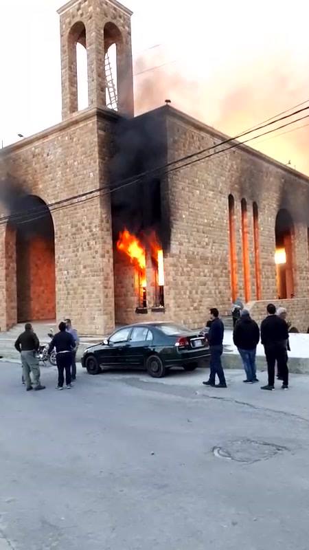 ‘Οπως μεταδίδουν τώρα μέσα του Λιβάνου μεγάλη πυρκαγιά προκλήθηκε στο εσωτερικό εκκλησίας της Παναγίας Baabdat. Ο μαύρος καπνός αυξανόταν καθώς έσβηνε η φωτιά . Προκλήθηκαν σοβαρές υλικές ζημιές στο ναό. Οι πρώτες εκτιμήσεις κάνουν λόγο για βραχυκύκλωμα.
