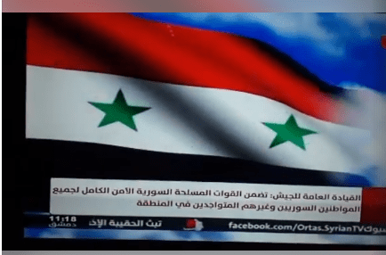 « Εκκινώντας από την απόλυτη δέσμευση του στρατού ν΄αναλάβει τις εθνικές ευθύνες του επιβάλλοντας την εθνική κυριαρχία του κράτους σε κάθε σπιθαμή του εδάφους της Συριακής Αραβικής Δημοκρατίας και σ΄απάντηση της κλήσης των κατοίκων της ζώνης του Manbij, το ΓΕΣ και οι Ένοπλες Δυνάμεις ανακοινώνουν την είσοδο μονάδων του συριακού στρατού στο Manbij και την ύψωση της σημαίας της Συριακής Αραβικής Δημοκρατίας στη ζώνη. Το ΓΕΣ επαναλαμβάνει την αποφασιστικότητά του να εξαλείψει την τρομοκρατία και ν΄αποτινάξει όλους τους κατακτητές από το συριακό έδαφος ».