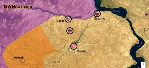 Έμπειρος πολεμικός ανταποκριτής φιλοκυβερνητικός αναφέρει τώρα πως ο στρατός των ΗΠΑ είναι ακόμα στη στρατιωτική βάση του, που βρίσκεται κοντά στο Πανεπιστήμιο της Ένωσης, 5 χλμ δυτικά του Manbij. Η Αλ Κάιντα είναι στα μισά του δρόμου μεταξύ του συριακού στρατού και της πόλης του Manbij.