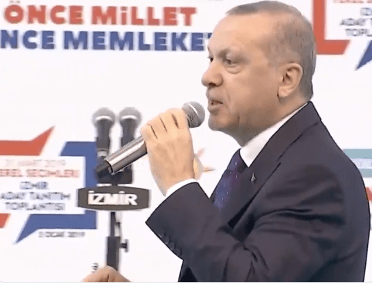 Στην Τούρκικη δυτική επαρχία της Σμύρνης δίπλα στην Ελλάδα, ο πρόεδρος της Τουρκίας Ερντογάν κατά την παρουσίαση συνδυασμού κόμματός του για Δημοτικές εκλογές απαγγέλλει ένα ποίημα που λέει ότι οι Τούρκοι έριξαν τους Έλληνες στην θάλασσα κατά τον Α ‘Παγκόσμιο Πόλεμο και ορκίζεται να πράξει το ίδιο και σήμερα για εκείνους που θα προσπαθήσουν να επιτεθούν στην ανεξαρτησία της Τουρκίας. Οι εξελίξεις είναι καταιγιστικές οι ισορροπίες στη Μ Ανατολή αλλάζουν οι συμμαχίες είναι εύθραστες υπάρχουν χώρες που κινούνται ως διπλοί ”πράκτορες” όπως η Τουρκία και όλα τα ενδεχόμενα είναι ανοιχτά κυρίως για Κύπρο και δευτερευόντως για νησιά Αιγαίου και Γκρίζες ζώνες καθώς η επιθετικότητα της Τουρκίας αυτή την περίοδο είναι σ΄έξαρση με βάση και το συριακό και οι συμμαχίες αποδεικνύονται κάτι παρά πάνω από εύθραστες π.χ Κούρδοι -ΗΠΑ. Και όλα αυτά ενδυναμώνονται στο πλαίσιο γεωπολιτικών ανακατατάξεων στο μαλακό υπογάστριο της Α Μεσογείου και την ανάδειξη οικονομικών ενεργειακών συμφερόντων στην προνομιακή κατά τ΄άλλα λεκάνη της Μεσογείου.