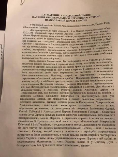Стамбульский Варфоломей по вызову, выполнив приказ госдепа США, выписал созданной секте украинских националистов-раскольников автокефальный «томос». Этим актом стамбульский Варфоломей окончательно порвал с мировым православием, получив печать Иуды Искариота……(Россия)