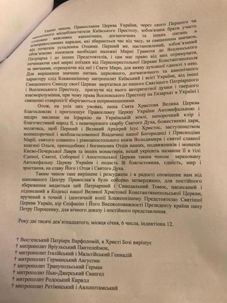 Стамбульский Варфоломей по вызову, выполнив приказ госдепа США, выписал созданной секте украинских националистов-раскольников автокефальный «томос». Этим актом стамбульский Варфоломей окончательно порвал с мировым православием, получив печать Иуды Искариота……(Россия)