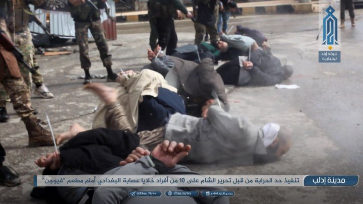 Χάος στο Idlib. H τρομοκρατική οργάνωση Haya Tahrir al-Sham τ. Αλ Νούσρα που έχει τον μεγαλύτερο έλεγχο της περιοχής αυτής προχώρησε σε ομαδική εκτέλεση 10 ατόμων που θεωρεί ότι είναι μέλη της ISIS ως αντίποινα για την επίθεση αυτοκτονίας πριν λίγες μέρες και όπου υπήρξαν πολλά θύματα. Η ομαδική εκτέλεση ήταν δημόσια και έγινε μπροστά στο restaurant όπου είχε γίνει η τρομοκρατική από το Ισλαμικό Κράτος.