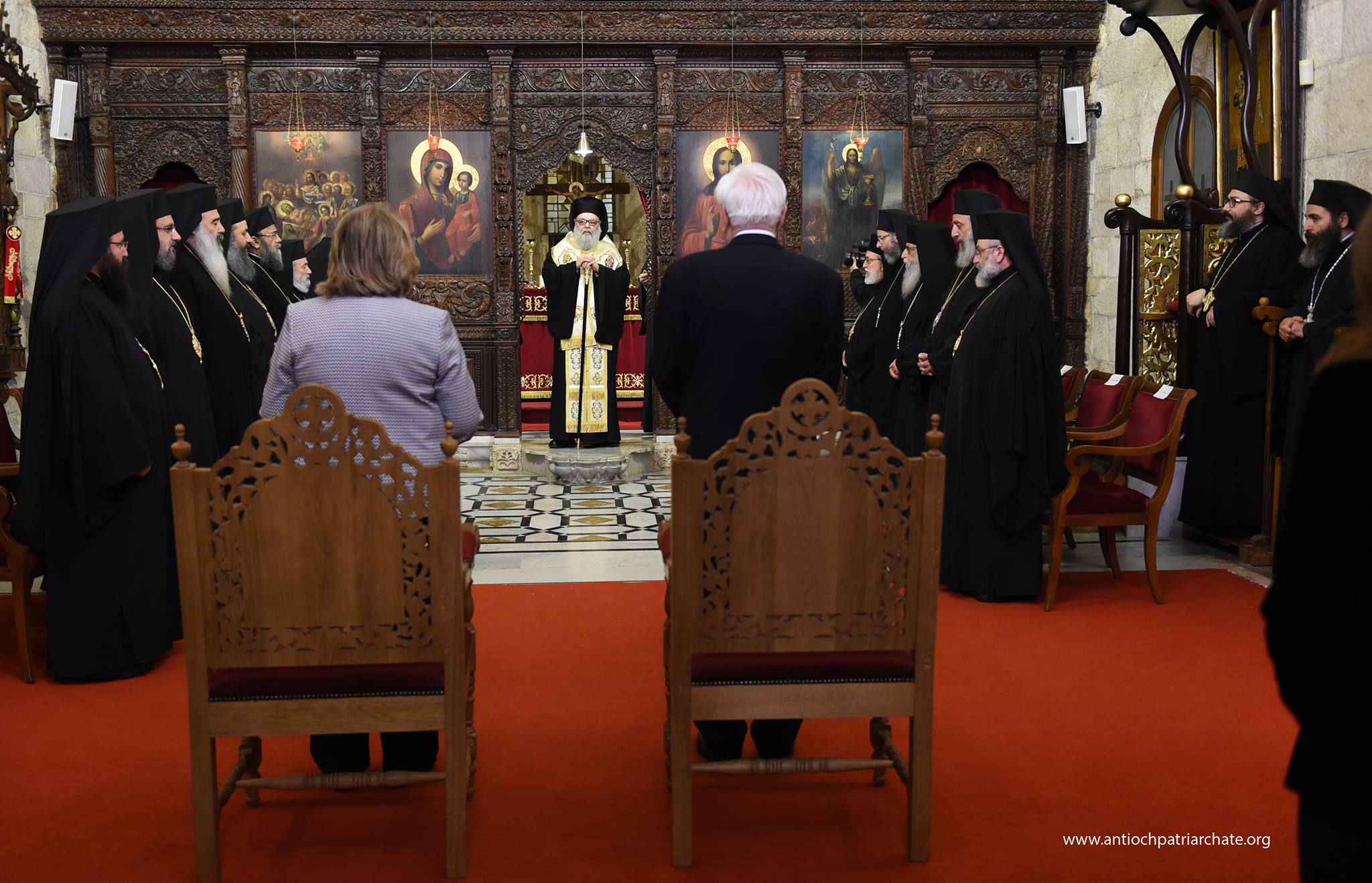 Έχω την μεγάλη τιμή να σας προσφέρω εκ μέρους της Εκκλησίας της Αντιοχείας το παράσημο των Αγίων Πέτρου και Παύλου ως την υψηλότερη διάκριση, έκφραση ευχαριστίας, τιμής και εκτίμησης για την συμβολή και την συνεισφορά της πατρίδας σας στο καλό της Εκκλησίας μας και των λαών μας.