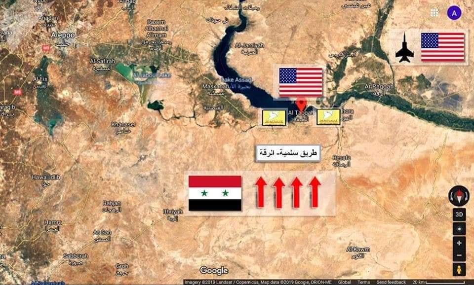Ο συριακός στρατός ήδη ελέγχει το χωριό Hawrat al-Jariyat, 12χλμ νότια της al Tabka στην δυτική περιφέρεια της Raqqa μετά την απόσυρση της κούρδικης πολιτοφυλακής μετά από διαπραγμάτευση με τους ντόπιους. To συριακό στρατό τον χωρίζουν πλέον μόλις 15χλμ από το φράγμα του Ευφράτη…Η αμερικάνικη συμμαχία επιχειρεί εικονικές επιδρομές στις θέσεις του συριακού στρατού στην Al-Hawrah και ο στρατός αρνείται να υποχωρήσει κι επανδρώνει την αεράμυνά του….Σύμφωνα με άλλες πηγές ο στρατός ανέκτησε νέα σημεία βόρεια πετρελαιοπηγών al Tarwat στην δυτική ύπαιθρο της Ράκα υποστηριζόμενη από τοπικές δυνάμεις φυλών.
