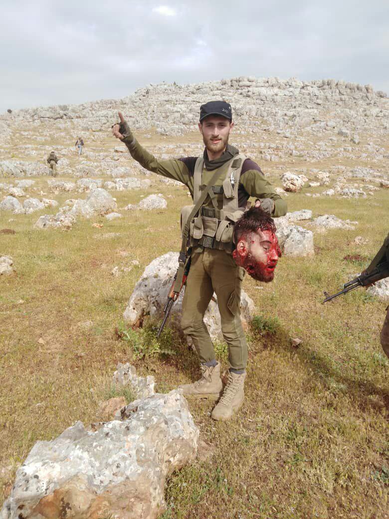 Oι τζιχαντιστές τρομοκράτες της Ahrar ash-Sham αποκεφάλισαν Σύριο στρατιώτη προχθές που αιχμαλωτίστηκε καθώς είχε τραυματιστεί σοβαρά στις μάχες στη Β Χάμα. Οι τρομοκράτες επιδεικνύουν το …. κεφάλι. Πρόκειται για ένα ακόμη αποτρόπαιο έγκλημα της Διεθνούς Λέσχης Τρομοκρατών του Ιντλίμπ που αποτελεί κατάφωρο έγκλημα πολέμου και κατά της ανθρωπότητας. Στο σχετικό βίντεο οι δήμιοι απευθύνονται στην κάμερα και θριαμβολογούν…. O αποκεφαλισμός έγινε με μικρό μαχαίρι με τελετουργικό ουαχαμπίτικο….