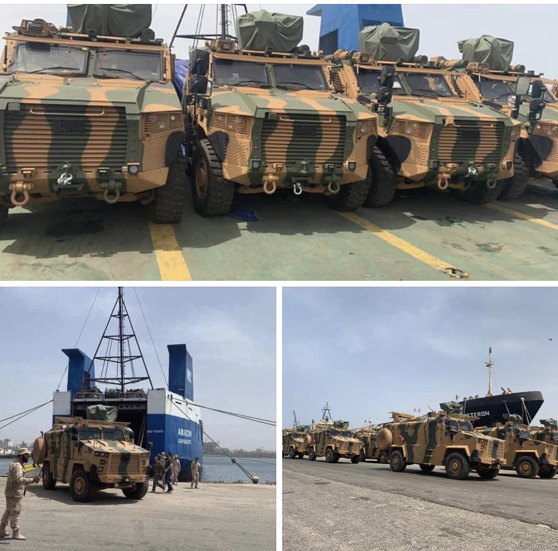 H ανάμειξη της Τουρκίας στον πόλεμο της Λιβύης υπερβαίνει τα εσκαμμένα αφού σήμερα έστειλε στο αντι- Haftar στρατόπεδο στις δυνάμει του GNA στρατιωτικά οχήματα μέσω του πλοίου Amazon GIURGIULESTI υπό σημαία Μολδαβίας. Αυτό έφθασε στο λιμάνι της Τρίπολης προερχόμενο από Σαμψούντα και αποβιβάστηκαν οι στρατιωτικοί εξοπλισμοί. Με αυτήν την κίνηση η Τουρκία παραβιάζει κι επίσημα το embargo όπλων που έχει επιβληθεί στη Λιβύη από τα Ηνωμένα Έθνη διοχετεύοντας MRAP Kirpi II σε ισλαμιστικές φράξιες και πολιτοφυλακές και τρομοκρατικές οργανώσεις που υποστηρίζουν το GNA που έχει διασύνδεση με τους Αδερφούς Μουσουλμάνους στην Tripoli! Τα οχήματα Kirpi II κατασκευάζονται από την τουρκο-καταριανών συμφερόντων BMC. Σύμφωνα με άλλες πηγές και πυρομαχικά και όπλα μεταφέρθηκαν από την Τουρκία στις ισλαμιστικές φράξιες Λιβύης. Μια από αυτές τις φράξιες είναι η Al-Somood Ταξιαρχία διευθυνόμενη από τον Salah Badi .