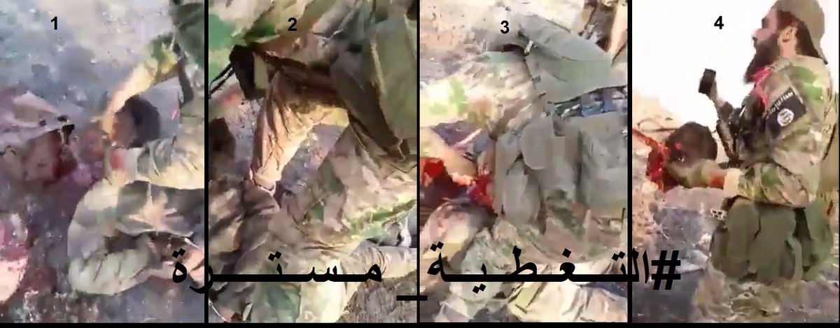 Φρικαλεότητες από τους τρομοκράτες της Αλ Κάιντα στη Συρία. Αποκεφαλίζουν νεκρό Σύριο στρατιώτη στη Βόρεια Χάμα. Οι τζιχαντιστές που μάχονται με περιβραχιόνια και διακριτικά της ISIS χαίρουν της ασυλίας της διεθνούς κοινότητας που ως κόρη οφθαλμού υπεραμύνεται σε όλα τα φόρα τη μεγαλύτερη βάση της διεθνούς τρομοκρατίας παγκοσμίως το κυβερνείο του Ιντλίμπ κι έχουν την άμεση υποστήριξη της Τουρκίας σε ανθρώπινο δυναμικό, εξοπλισμό και διπλωματία.