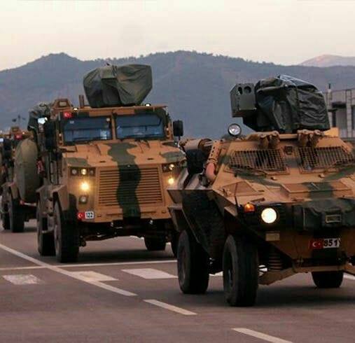 O τουρκικός στρατός έστειλε σήμερα Πέμπτη και νέες σημαντικές στρατιωτικές ενισχύσεις στα σημεία ελέγχου και παρατηρητήρια που ελέγχει στο συριακό κυβερνείο του Ιντλίμπ και στο βορρά της επαρχίας της Χάμα. Σύμφωνα με το πρακτορείο Anadolu οι ενισχύσεις περιλαμβάνουν πολυάριθμα θωρακισμένα οχήματα, εξοπλισμό, θωρακισμένα οχήματα μεταφοράς προσωπικού, διάφορους τύπους πυρομαχικών, προσωπικό και ενισχύσεις σημαντικές που θ΄αποδοθούν στα τουρκικά σημεία ελέγχου Ηama και δυτικά του Χαλεπίου.Επίσης χθες τουρκικά μαχητικά F-16 παραβίασαν το συριακό εναέριο χώρο και πέταξαν πάνω από την πόλη Tall Rifat στο βορρά της επαρχίας Χαλεπίου. Οι τρομοκράτες στη Β Χάμα εξακολουθούν να κρατούν το ύψωμα Tal Malah και κατά συνέπεια ο αυτοκινητόδρομος που ενώνει τις 2 ορθόδοξες πόλεις Mahardah-Al Sukalabiyah παραμένει κλειστός.