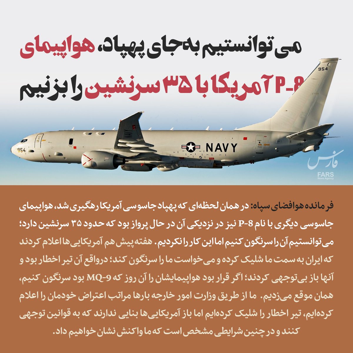 Το Ιράν ισχυρίζεται ούτε λίγο ούτε πολύ πως χάρισε τη ζωή σε 35 Αμερικανούς στρατιωτικούς καθώς όταν εντόπισε το Global Hawk αυτό συνοδευόταν από ένα άλλο αμερικάνικο κατασκοπευτικό αεροσκάφος τύπου (P-8) Poseidon με 35 μέλη πλήρωμα που όμως δεν το στόχευσε ακριβώς γιατί είχε 35 στρατιωτικούς.”Aυτό ήταν μια προειδοποίηση για τις αμερικανικές δυνάμεις” αναφέρει.fars