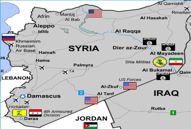 Φαίνεται ομοίως πως το μάθημα από την βάση του Al-Tanf αποτέλεσε τη βάση για τη συνέχιση της στρατιωτικής ανάπτυξης των ΗΠΑ και ΝΑΤΟ στη Συρία. Η αμερικάνικη βάση του Al-Tanf παγιδεύθηκε για καιρό βήμα βήμα ως μια αιματηρή σύγκρουση θέσει αντιμέτωπους τους φιλοκυβερνητικούς Σύριους υποσρτηριζόμενους από Ιρανούς εθελοντές και Ρώσους συμβούλους με την αμερικάνικη αεροπορία. Μετά από αυτή τη μάχη οι συριακές δυνάμεις περιορίστηκαν στο να επιτηρούν από μια πλειάδα παρατηρητηρίων πάνω από 50 χιλιόμετρα από τις αμερικανικές βάσεις, οι οποίες περιβάλλονται από τοπικές δυνάμεις εφεδρείας και κάλυψη αέρα από το γειτονικό Ιράκ για βέλτιστη προστασία.