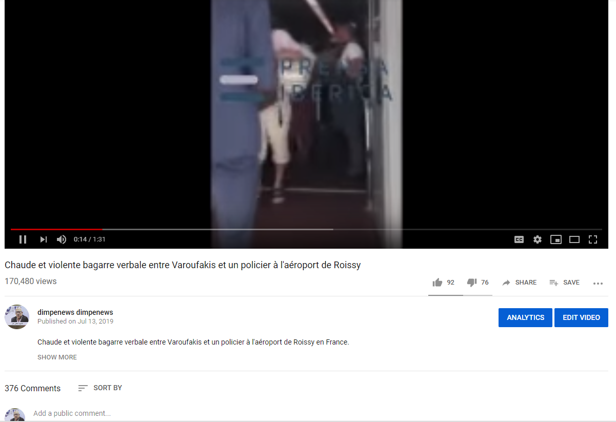 Ενώ είχε ξεπεράσει τα 180.000 views και όδευε αισίως για τα 200.000 το You Tube το κατέβασε με την αιτιολογία ότι δέχθηκε καταγγελία από άτομο για παραβίαση ιδιωτικού απορρήτου. Ποιό ιδιωτικό απόρρητο ο κύριος είναι δημόσιο πρόσωπο, ό,τι έγινε έγινε σε δημόσιο χώρο παρουσία μαρτύρων και το υλικό που κράτησε η κάμερα είναι στοιχείο της έρευνας σ’ ένα επεισόδιο όπου τα εμπλεκόμενα μέρη έχουν αλληλομηνυθεί…….. Η Δημοκρατία στην Ελλάδα μ’ αφορμή τη λογοκρισία στο βίντεο Varoufakis , τι έχεις Γιάννη ό,τι είχα πάντα …..