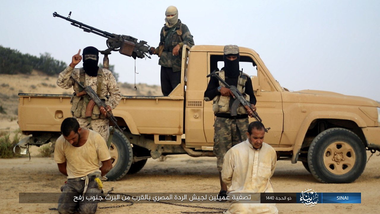 To παράρτημα της τρομοκρατική οργάνωσης ISIS στο Σινά η Wilayat Sinai (επαρχία Σινά) διακινεί φωτογραφίες από την εκτέλεση 2 ανδρών της φυλής Taraben στο χωριό Al-Barth νότια της πόλης Rafah με την κατηγορία ότι δούλευαν και συνεργάζονταν με τις αιγυπτιακές ένοπλες δυνάμεις. Κουκουλοφόροι δήμιοι εκτελούν εξ επαφής και μ΄αυτόματα από πίσω τους 2 ομήρους.
