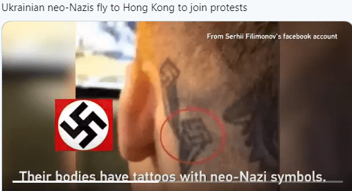 Tweet από το « Hong Kong Hermit » δείχνουν μια photo ενός tatouage nazi ενός από τους Ουκρανούς πού πήγαν στο Hong Kong