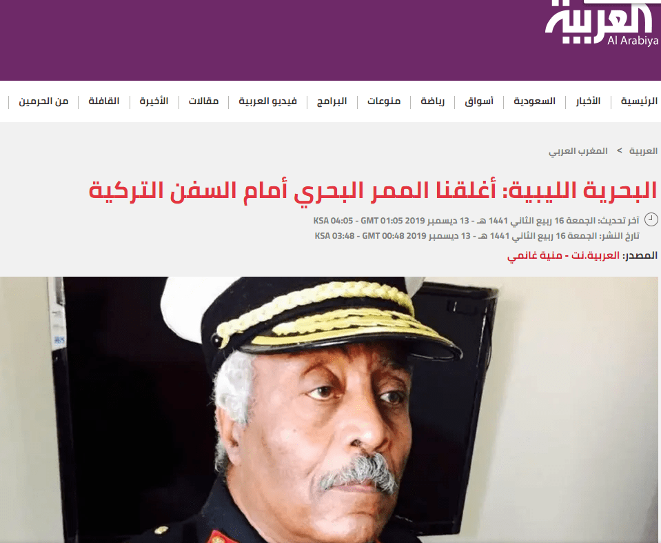 Ο αρχηγός του Γενικού Επιτελείου Ναυτικού του LNA της Λιβύης ο ναύαρχος Faraj Al Mahdawi, δήλωσε ότι η Λιβύη και η Ελλάδα συμφώνησαν να μπλοκάρουν τη θαλάσσια λωρίδα μεταξύ του ελληνικού νησιού της Κρήτης και των ανατολικών θαλάσσιων συνόρων της Λιβύης, μπροστά στα τουρκικά πλοία, ειδικά σ΄εκείνα που έρχονται στη δυτική Λιβύη φορτωμένα με με μηχανήματα, όπλα και ISIS.