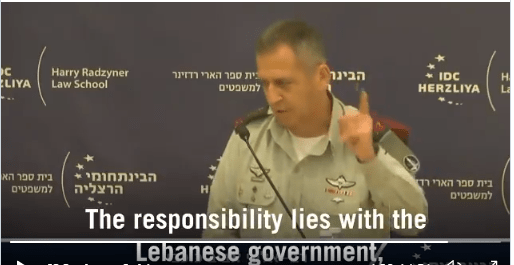 Στον επόμενο πόλεμο (1) θα βομβαρδίσουμε αεροπορικώς δυνατά μέσα σε αστικές ζώνες. Είναι ο εχθρός αυτός που επιλέγει τη θέση του εκεί..όταν εμείς λέμε εκεί αυτό δεν είναι ακριβώς ότι ο εχθρός επιλέγει να τοποθετήσει εαυτόν εκεί αλλά ο εχθρός επίσης επιλέγει να εκτοξεύσει χιλιάδες ρουκέτες και πυραύλους σε Ισραηλινούς πολίτες..Αποστολή μας είναι να το σταματήσουμε αυτό. Η διαφορά ανάμεσα σε μας και στον εχθρό μας είναι ότι είμαστε διαφορετικοί από τον εχθρό μας που κάνει οτιδήποτε να επιτεθεί σε πολίτες, εμείς βασιζόμαστε στις καλές μυστικές υπηρεσίες στις καλές ικανότητές μας αεροπορικών βομβαρδισμών στην ποιότητα καθοδήγησης. Θα βομβαρδίσουμε αεροπορικώς στηριζόμενοι στις μυστικές υπηρεσίες κι οι ικανότητες των μυστικών μας υπηρεσιών αναπτύσσονται καθημερινά.(2)
