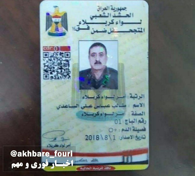 Το Saudi al-Hadith network κι άλλες πηγές μετέφεραν τη δολοφονία του Abbas Ali Al-Sa’edi διοικητή της Ταξιαρχίας Karbala φράξιας που ανήκει στους al-Hashed al-Shaabi (PMU). Αν και νωρίτερα ιρακινές πηγές και η σιίτικη πολιτοφυλακή al-Hashed al-Shaabi δεν είχε επιβεβαιώσει την απώλεια ωστόσο είναι γεγονός αφού έχει διακινηθεί φωτογραφία που πιστοποιεί το θάνατό του. Δολοφονήθηκε από αταυτοποίητο ένοπλο μπροστά από το σπίτι του, ο δολοφόνος χρησιμοποίησε σιγαστήρα. Το θύμα δέχθηκε κατάστηθα τις σφαίρες..Συμπληρωματικές πληροφορίες αναφέρουν πως σκοτώθηκαν και 2 συνοδοί του κατά την ανταλλαγή πυρών με αταυτοποίητους δολοφόνους.