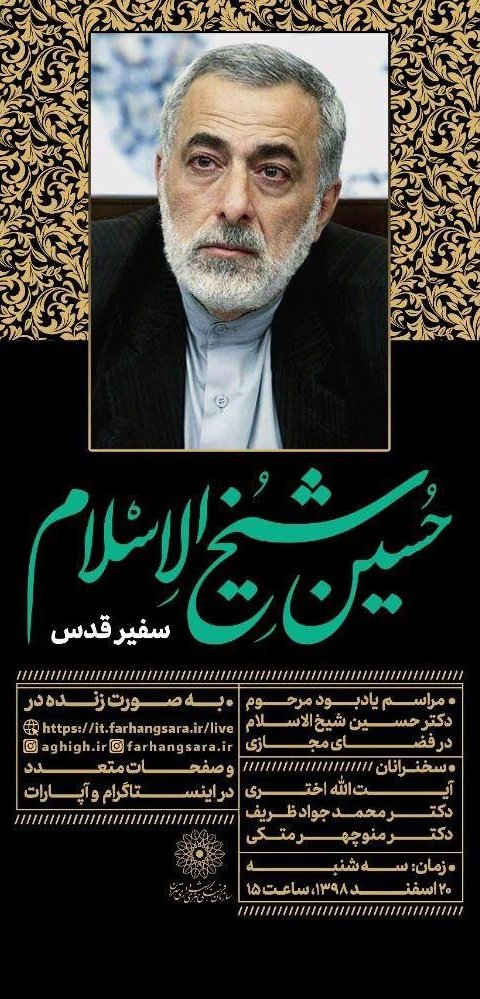”Η τελετή μνήμης του εκλιπόντος και εξέχοντος διπλωμάτη της Ισλαμικής Δημοκρατίας του Ιράν κ. Hossein Shaykh al-Islam θα διεξαχθεί αύριο από τις 9 π.μ. έως τις 5 μ.μ. με την ομιλία των Υπουργού Εξωτερικών Dr. Zarif, του Dr. Mottaki και του Ayatollah Akhtari και θα μεταδοθεί στα δίκτυα Apparatus και Instagram”, ανακοίνωσε πριν λίγο ιρανικό Yπουργείο Εξωτερικών.