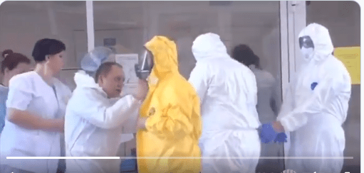 O Ρώσος Πρόεδρος Vladimir Putin στην πρώτη γραμμή της μάχης κατά του covid19. Eπισκέφθηκε νοσοκομείο που είναι εξειδικευμένο στην ασθένεια και έχει ανθρώπους που πάσχουν από αυτήν στην περιοχή της Kommunarka. Φόρεσε μαι κίτρινη ειδική στολή και μαύρη μάσκα.Συζήτησε με τον Διευθυντή του Νοσοκομείου μέτρα καταπολέμησης της επιδημίας.