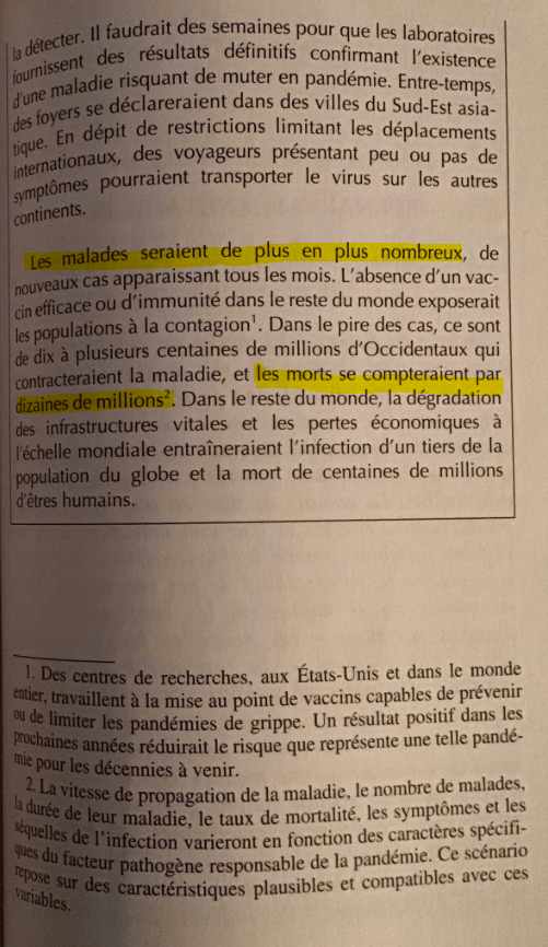 Το κείμενο προβλέπει ακόμη σε ποιά ζώνη και κάτω υπό ποιες συνθήκες θα μπορούσε να προκύψει αυτός ο νέος ιός: “Εάν εκδηλωθεί μια πανδημική νόσος, θα γίνει αναμφισβήτητα σε μια πυκνοκατοικημένη ζώνη, όπου υπάρχει στενή γειτνίαση μεταξύ ανθρώπων και ζώων, όπως στην Κίνα και στη Νοτιοανατολική Ασία, όπου οι άνθρωποι ζουν σε επαφή με την πανίδα. “