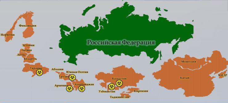 Προκειμένου να διεξαχθεί ένας βιολογικός πόλεμος, η Αμερική περιβάλλει τη Ρωσία, την Κίνα και το Ιράν με ένα δίκτυο στρατιωτικών βιολογικών εργαστηρίων στα προτεκτοράτα / αποικίες της, που αιχμαλωτίστηκαν είτε από «πολύχρωμες επαναστάσεις» είτε από την αγορά / εκβιάζοντας «συμπαράγοντες» / κυβερνώντες «ελίτ».