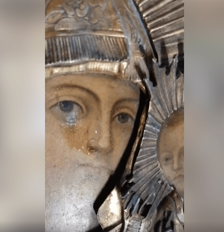 ”Στην κλειστή εκκλησία, δάκρυα ρέουν από το πρόσωπο της μητέρας του Θεού στην