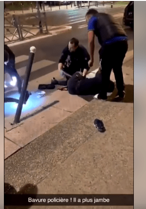 Για β΄συνεχόμενη νύχτα επεισόδια. Την παραμονή ένας 30χρονος ο Mouldi με μηχανή προσέκρουσε με δύναμη σε μια πόρτα περιπολικού που άνοιξε ξαφνικά. Σε vidéo στο Snapchat και στο Twitter,είναι κατά γης το δε πόδι του φαίνεται ξεριζωμένο – αν και σε εγχείρηση που κράτησε μια ολόκληρη νύχτα μοιάζει ν΄απέφυγε τα χειρότερα-, ακούγεται να ουρλιάζει. Το αίμα έρεε ποτάμι.. »